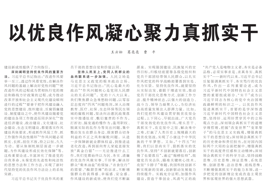 以优良作风凝心聚力真抓实干